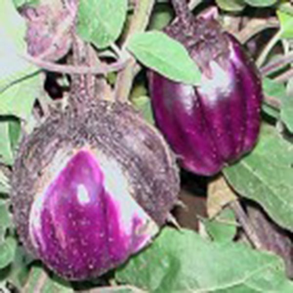 Runde Sorte, gedrungen und gerippt, leuchtend violett mit hellem Ansatz.